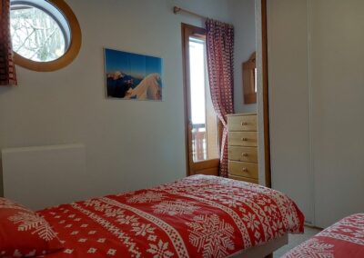 • La chambre Chalet d’une superficie de 9 m2, avec 2 lits simples.